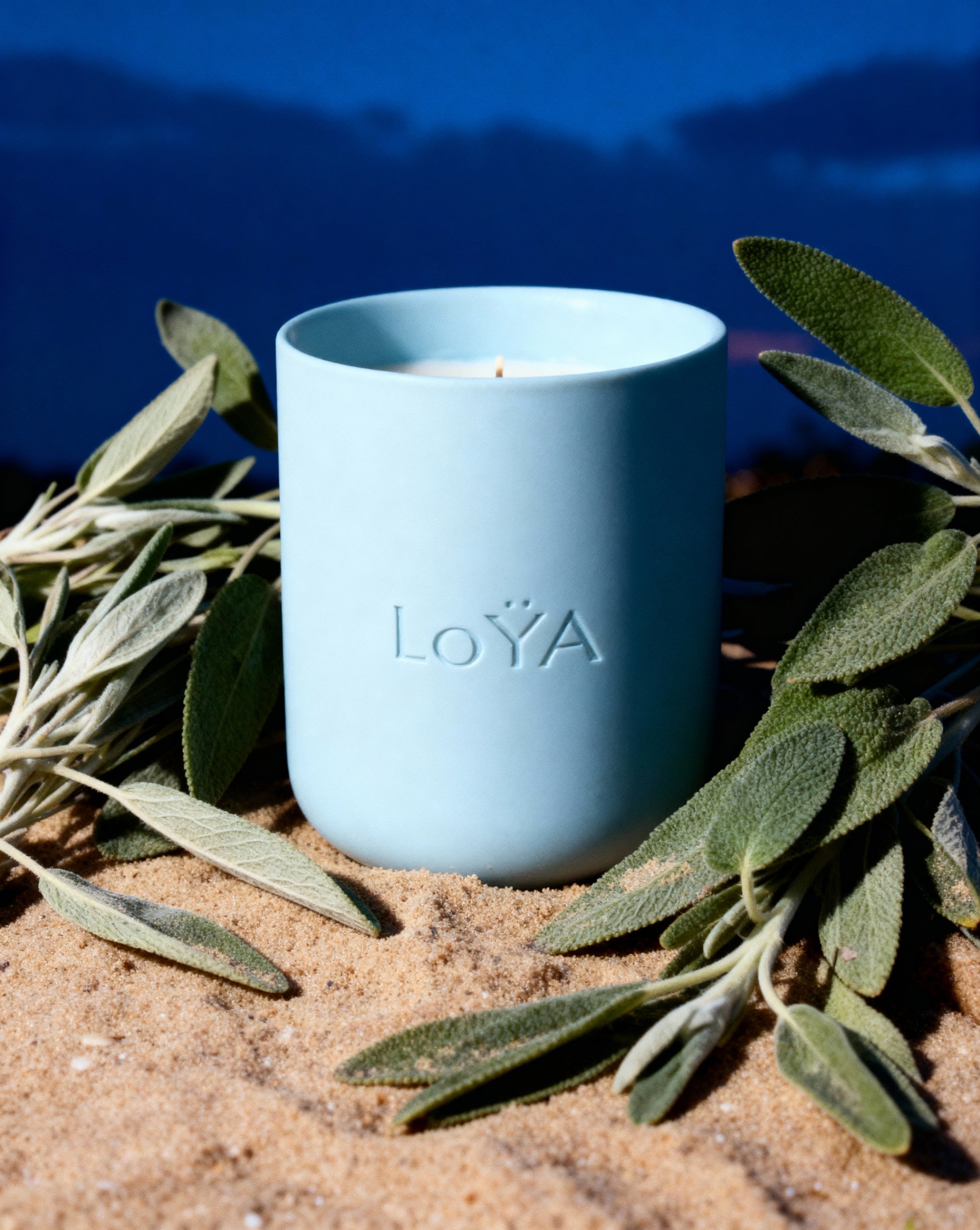 LoYA Sage – Powder Blue Jar, Muted Moss Green Wax